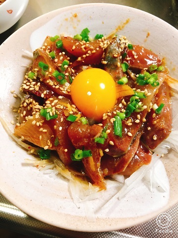調味料をすべて合わせてそこに食べやすい大きさに切った魚を10分~15分つけて置き、仕上に小口切りにしたネギごま卵黄をのせて出来上がりです^^